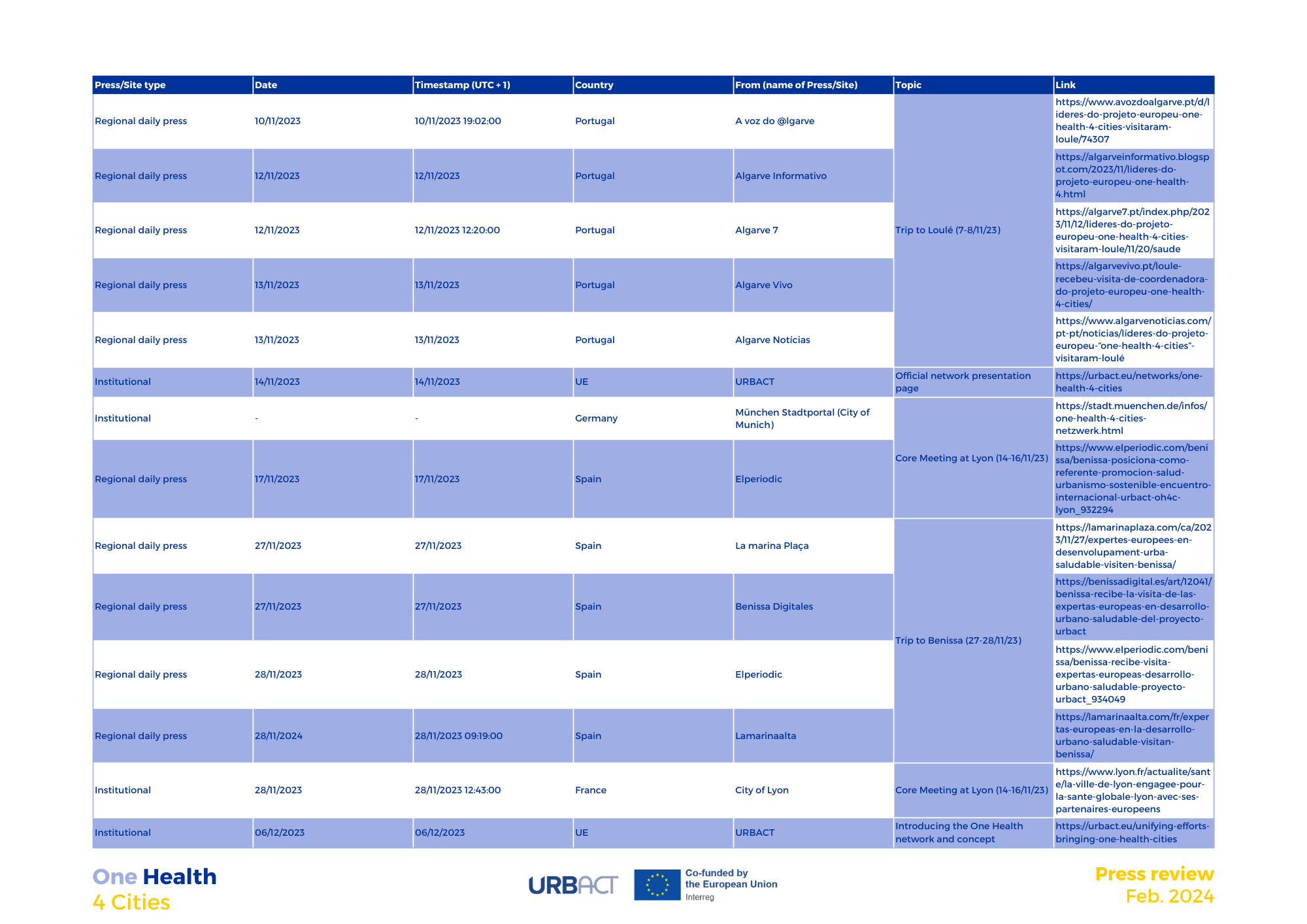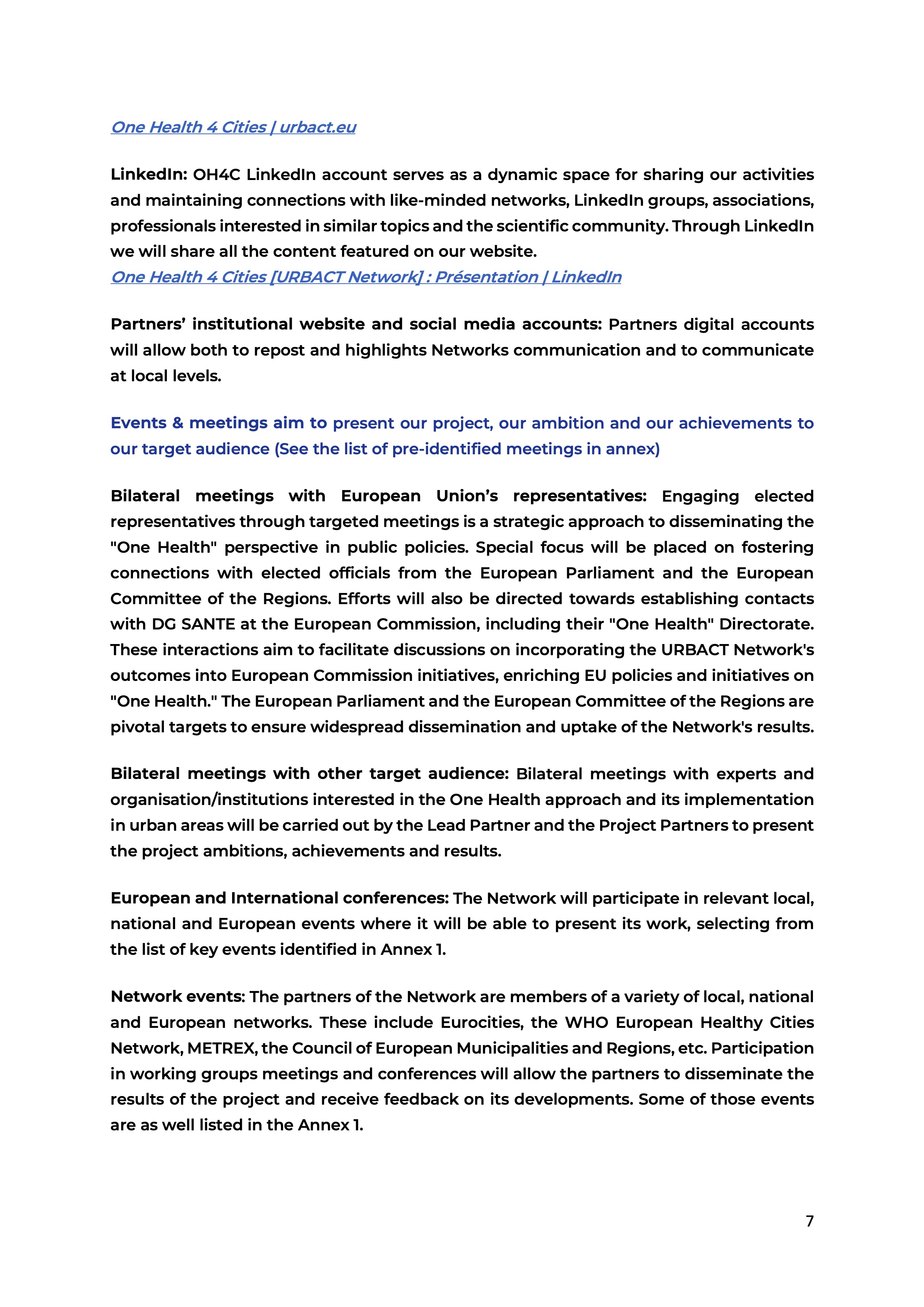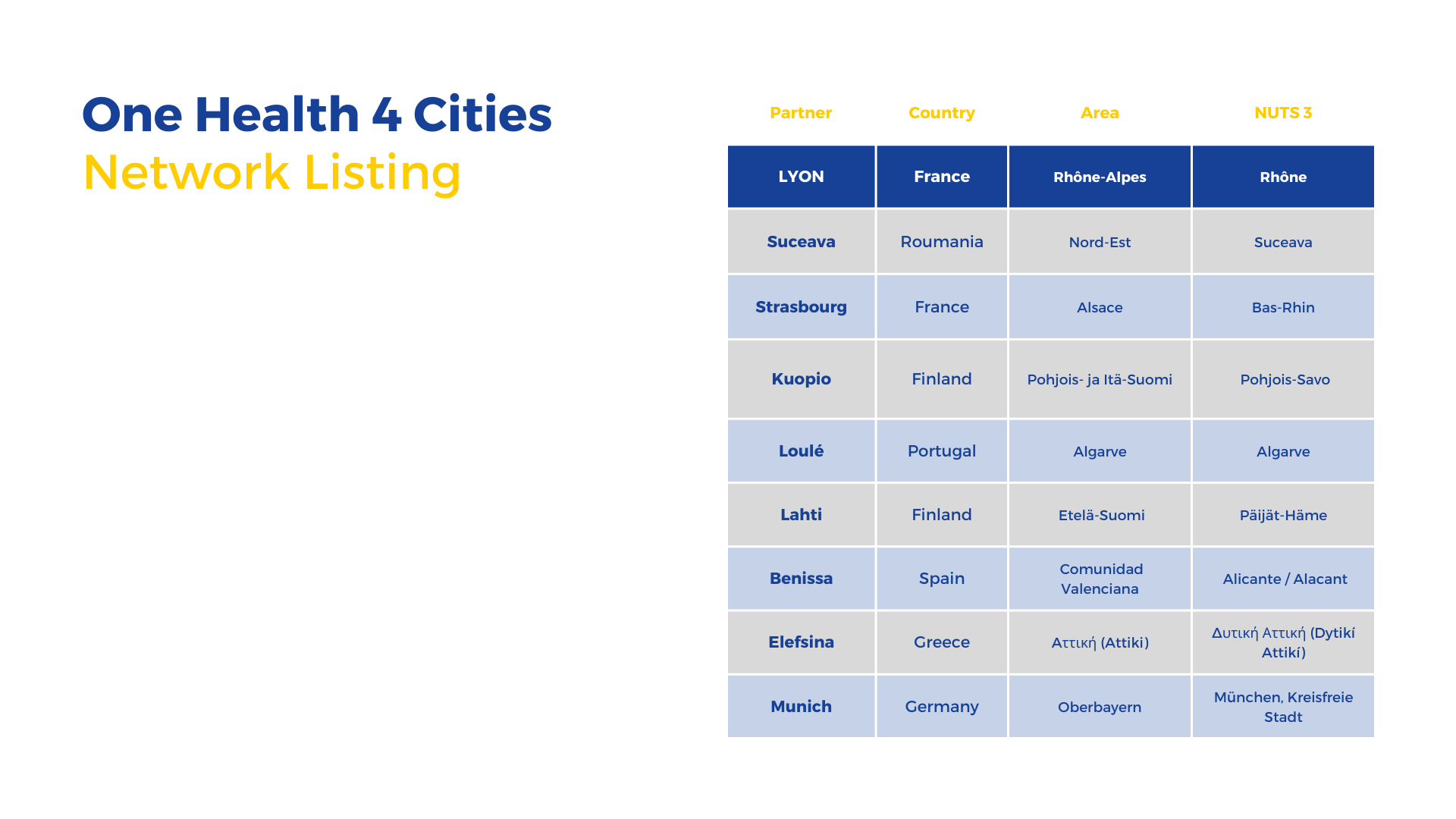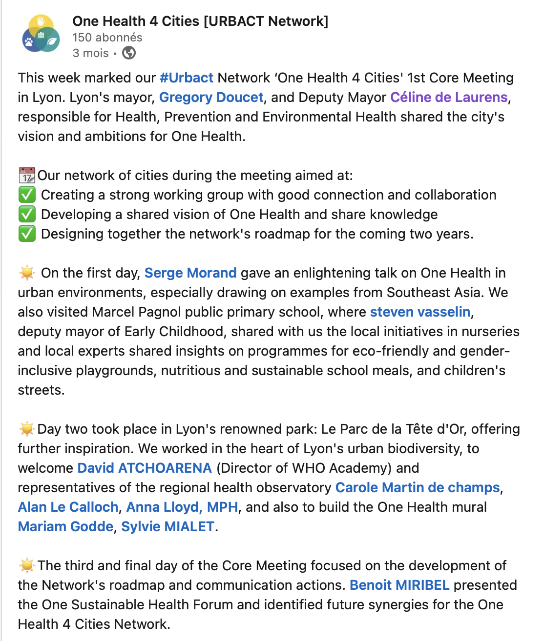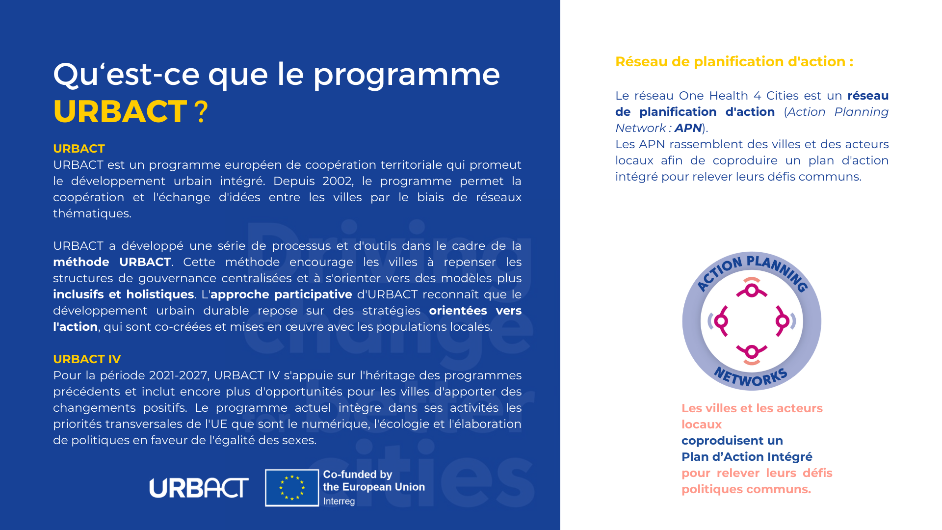 Projet : Réseaux européen One Health 4 Cities (programme URBACT), septembre 2023