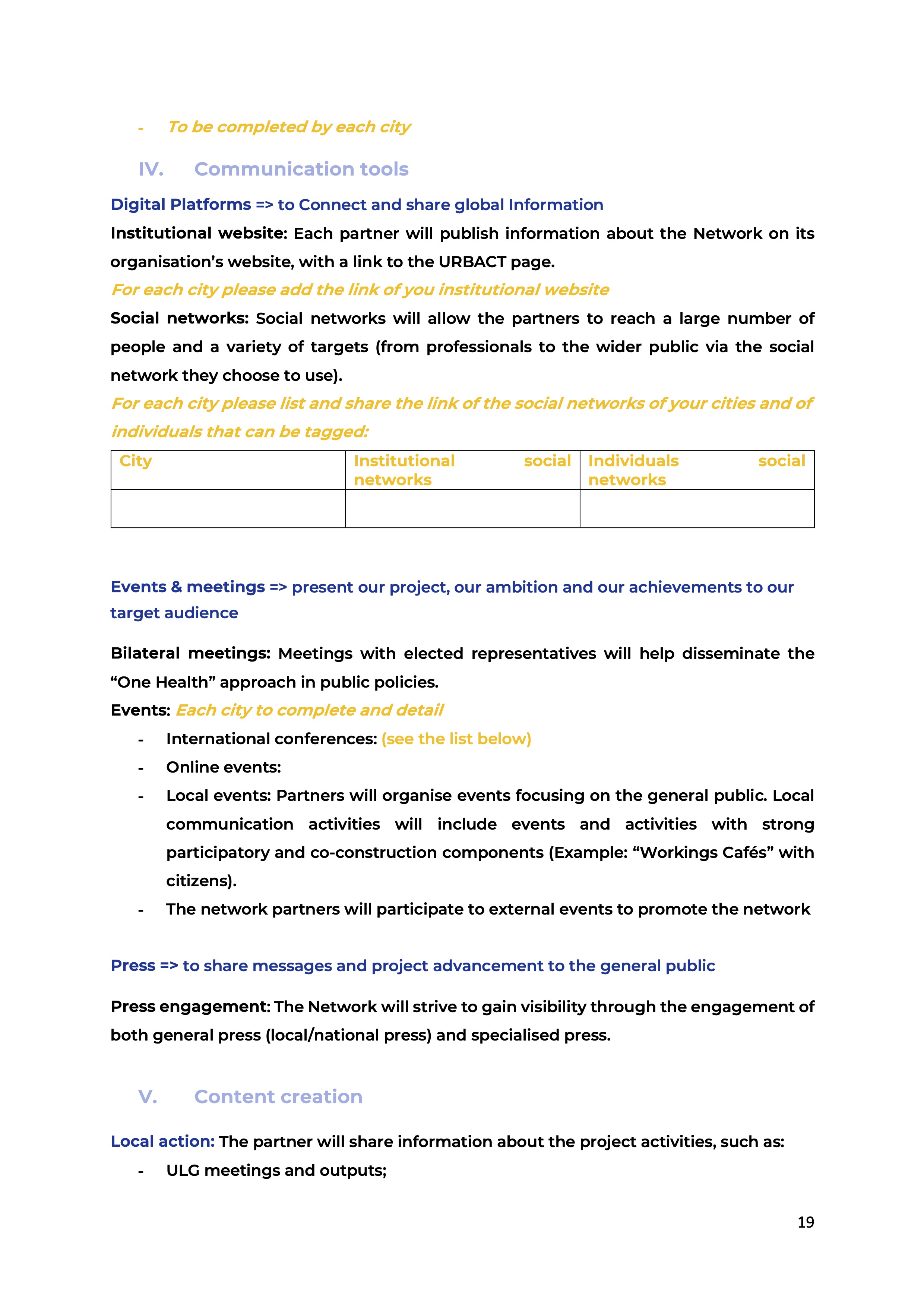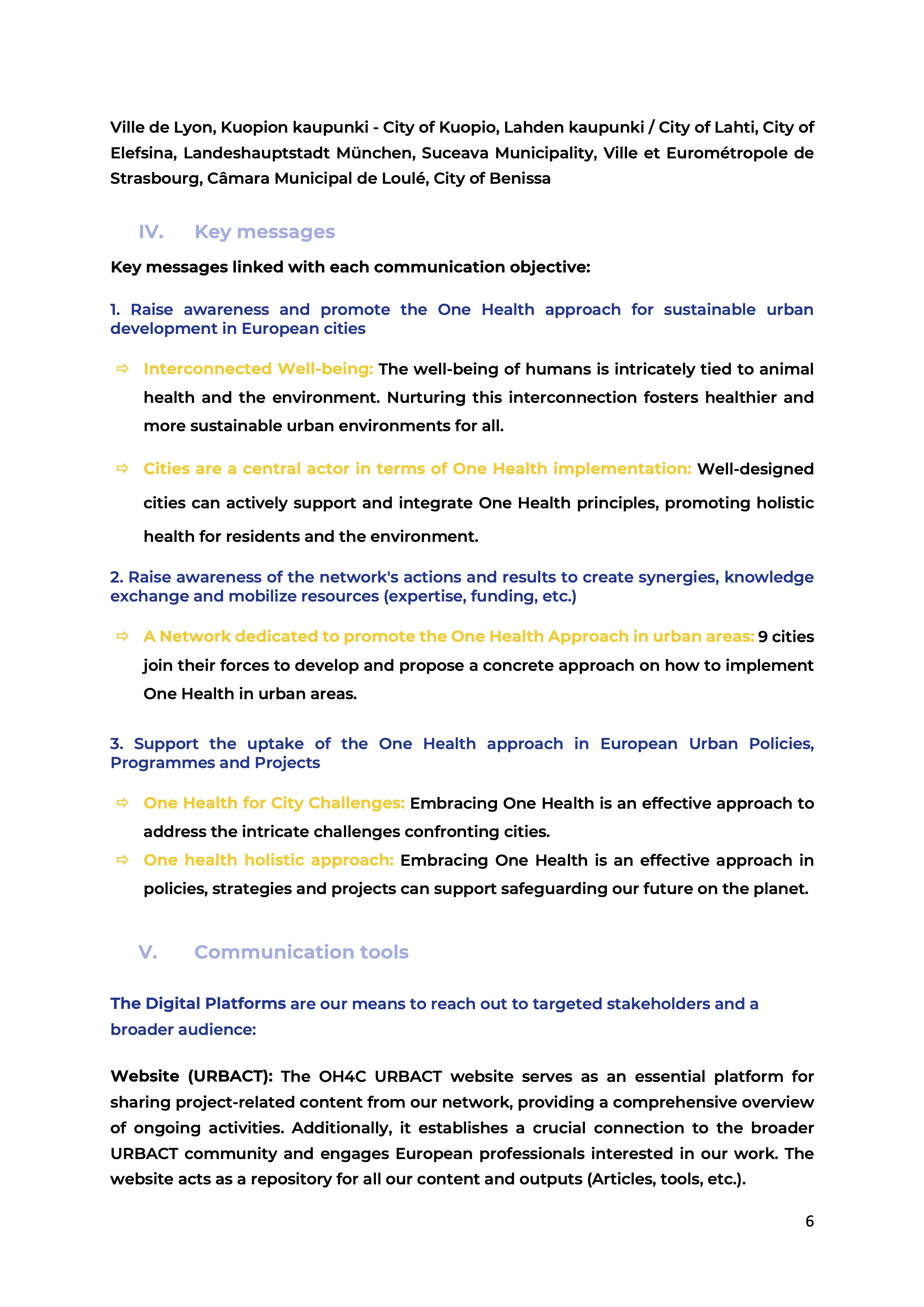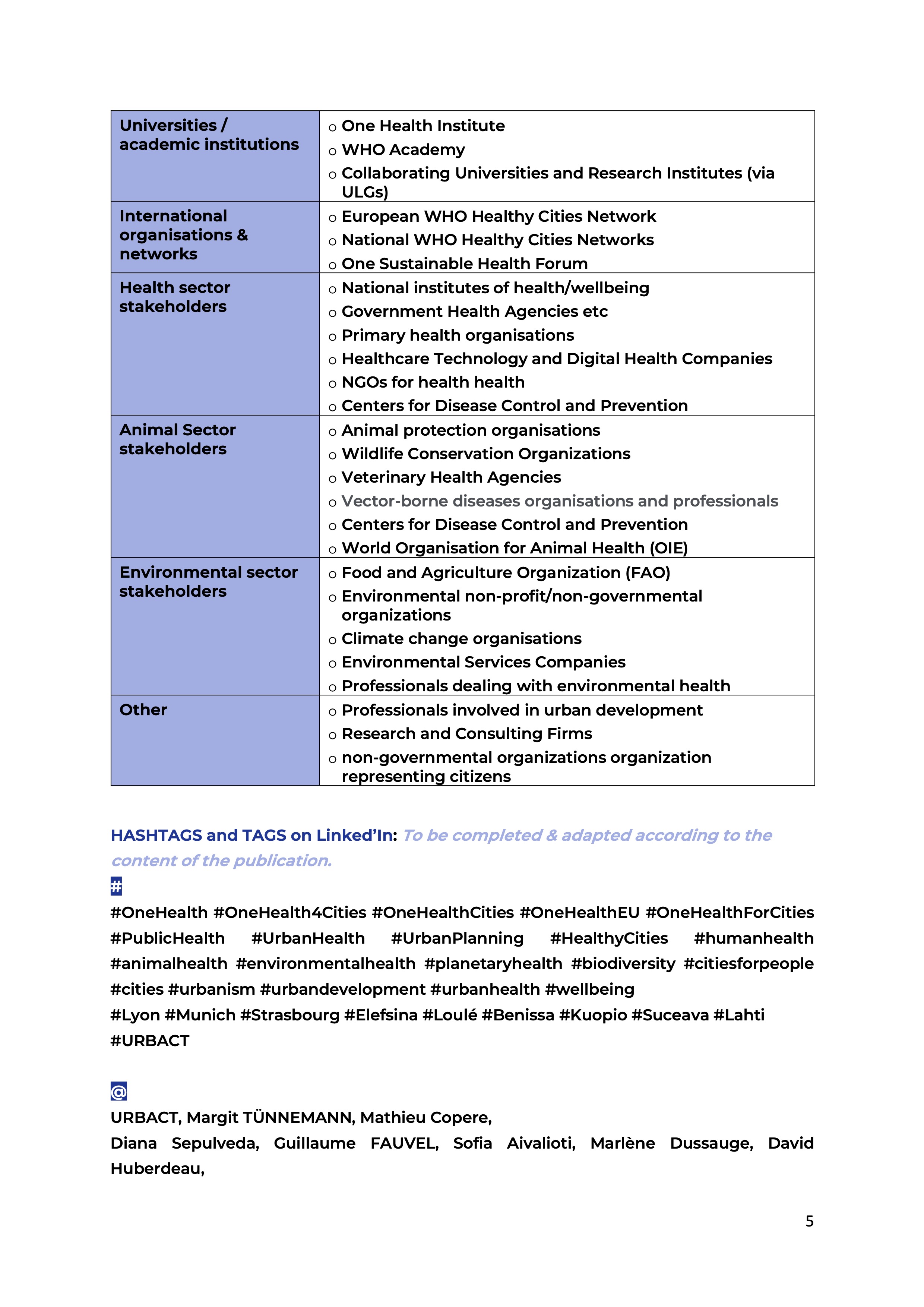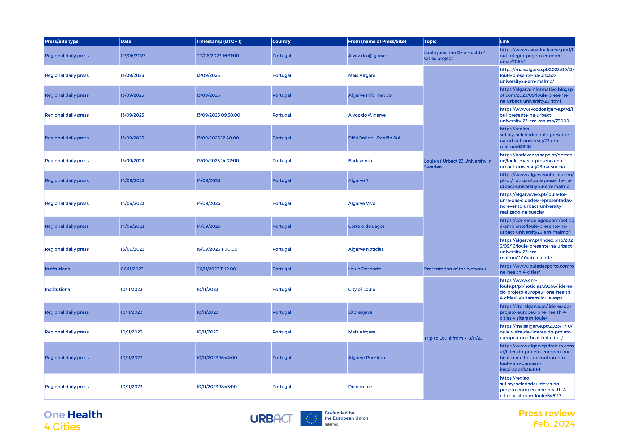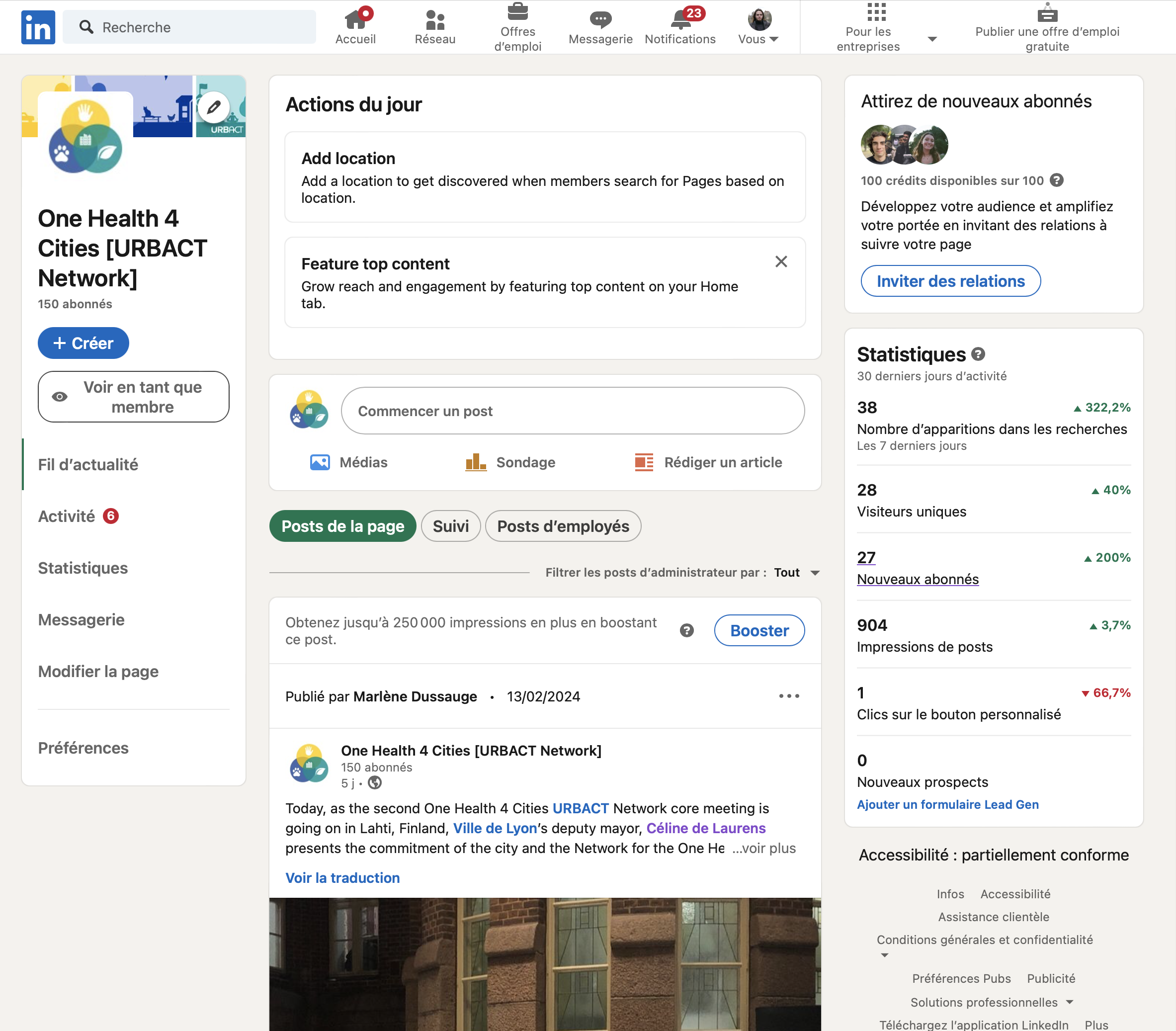 Projet : Réseaux européen One Health 4 Cities (programme URBACT), septembre 2023