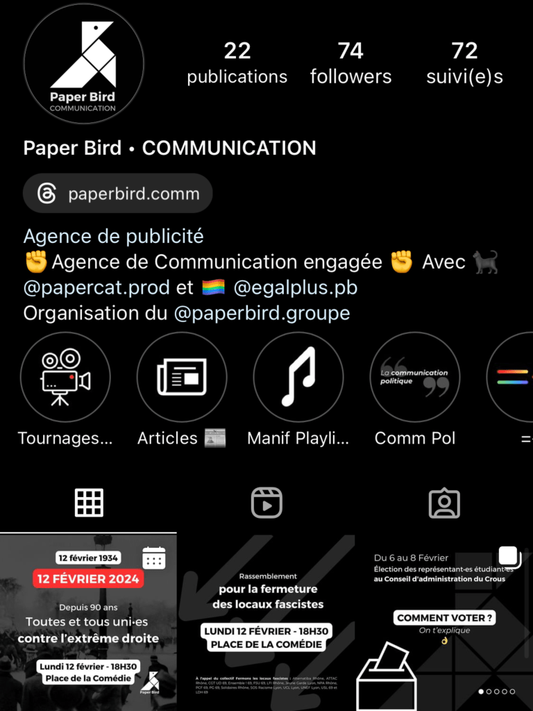 Projet : Comptes réseaux sociaux de Paper Bird Communication