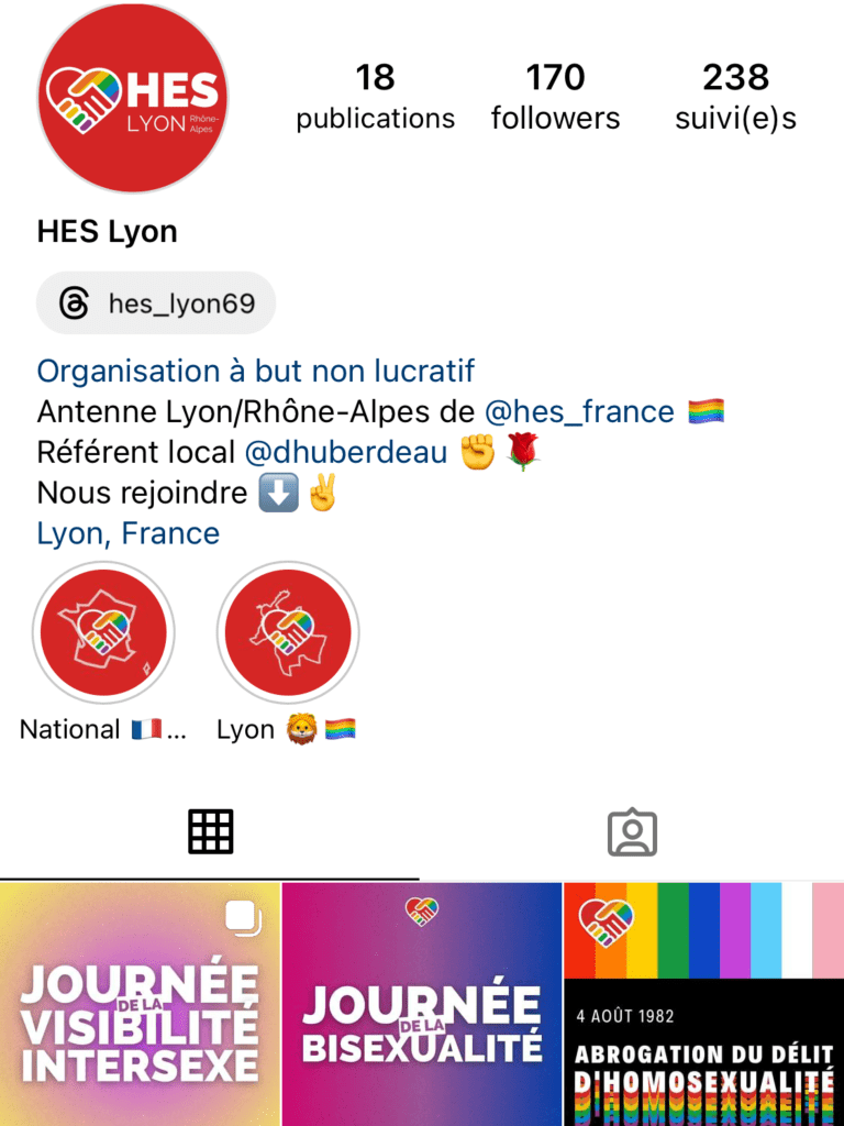 Projet : Page RS de l’antenne Lyon/Rhône-Alpes de l’association Homosexualités et Socialisme (HES).