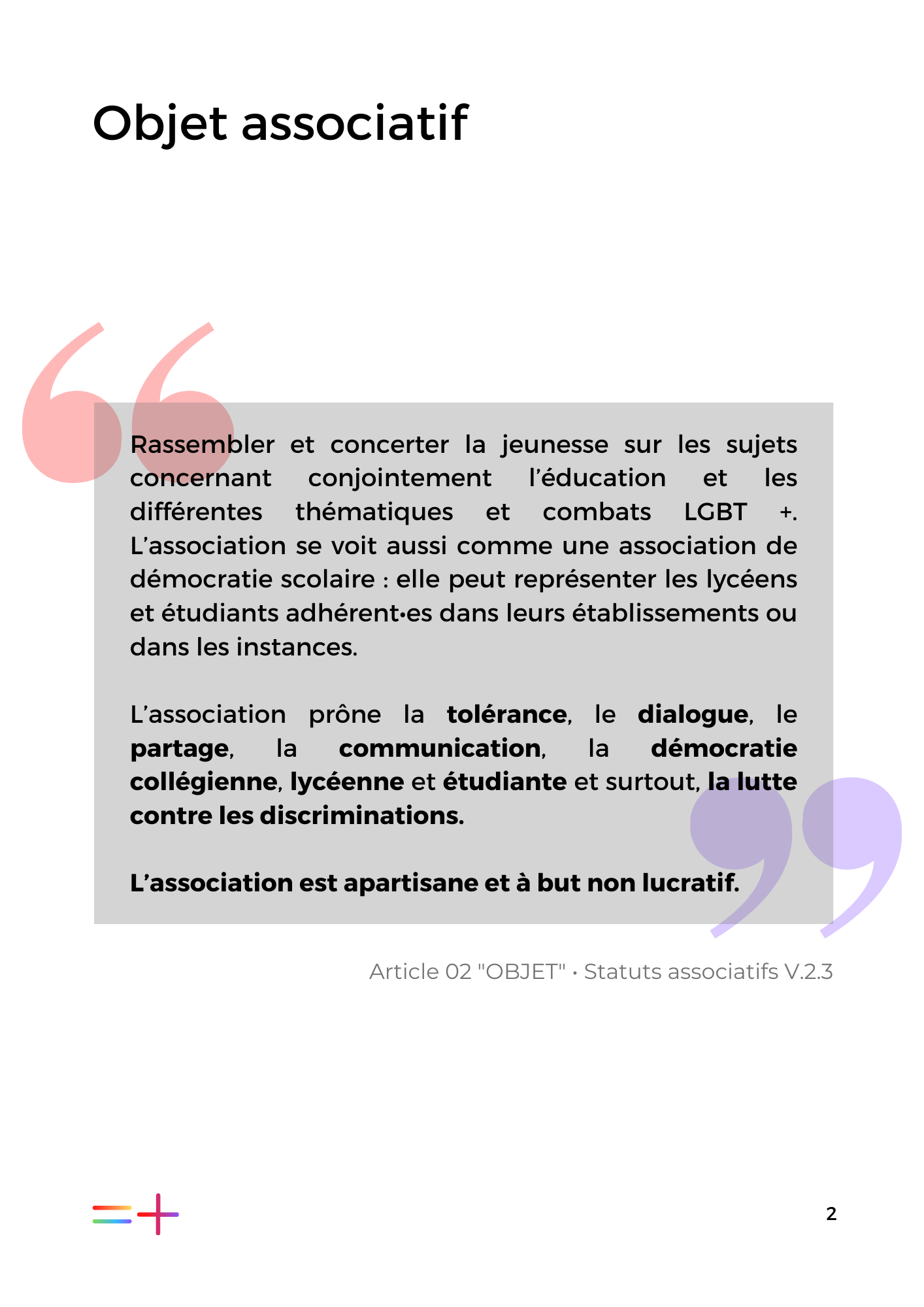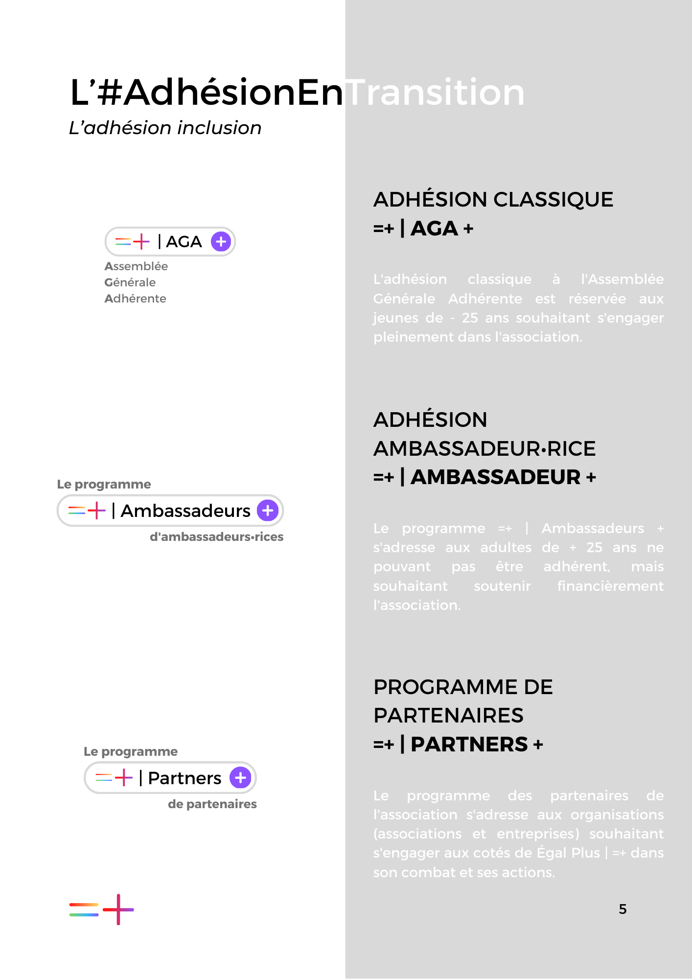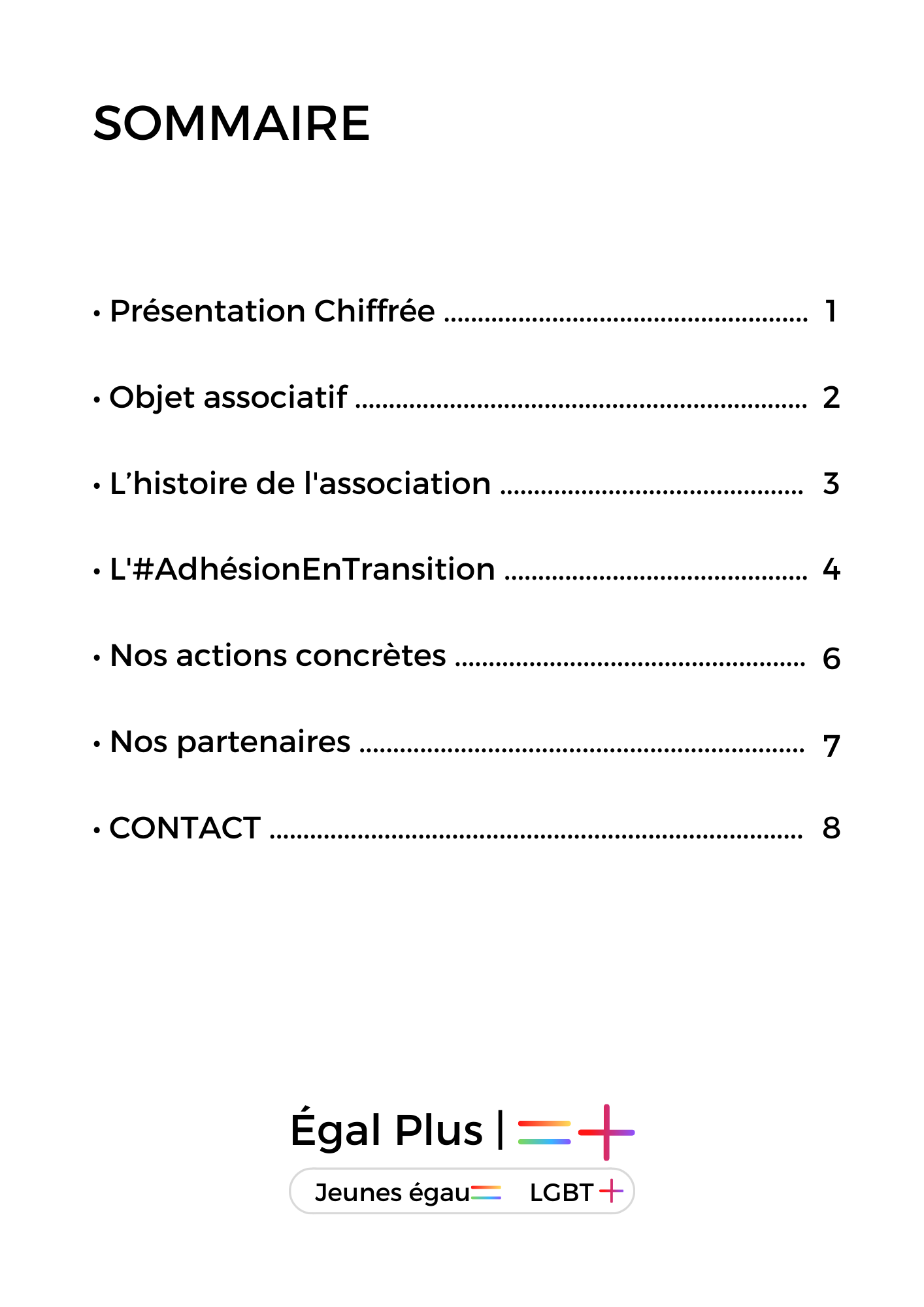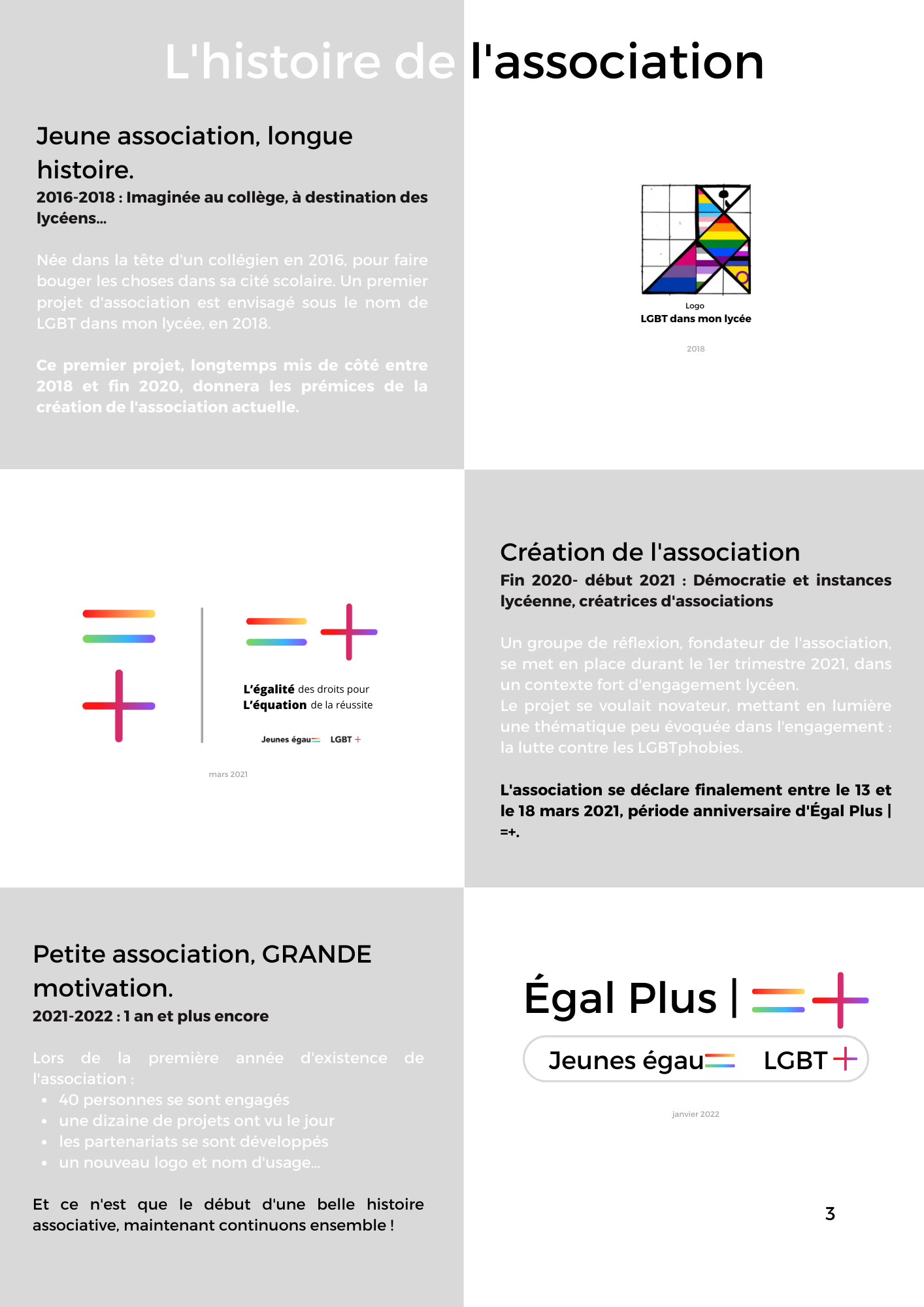 Projet : Livret de l’association (aujourd’hui entreprise) Égal Plus | =+, 2022.