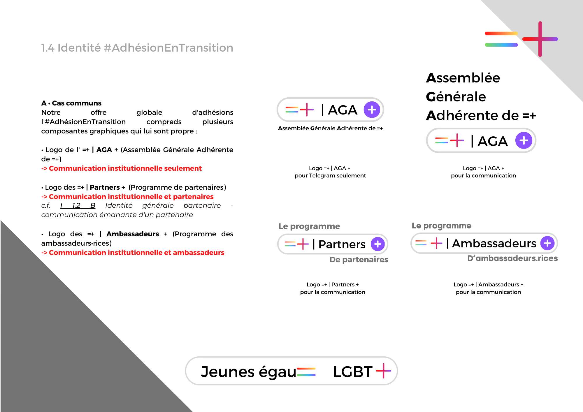 Projet : Charte graphique de l’association (aujourd’hui entreprise) Égal Plus | =+, 2021.
