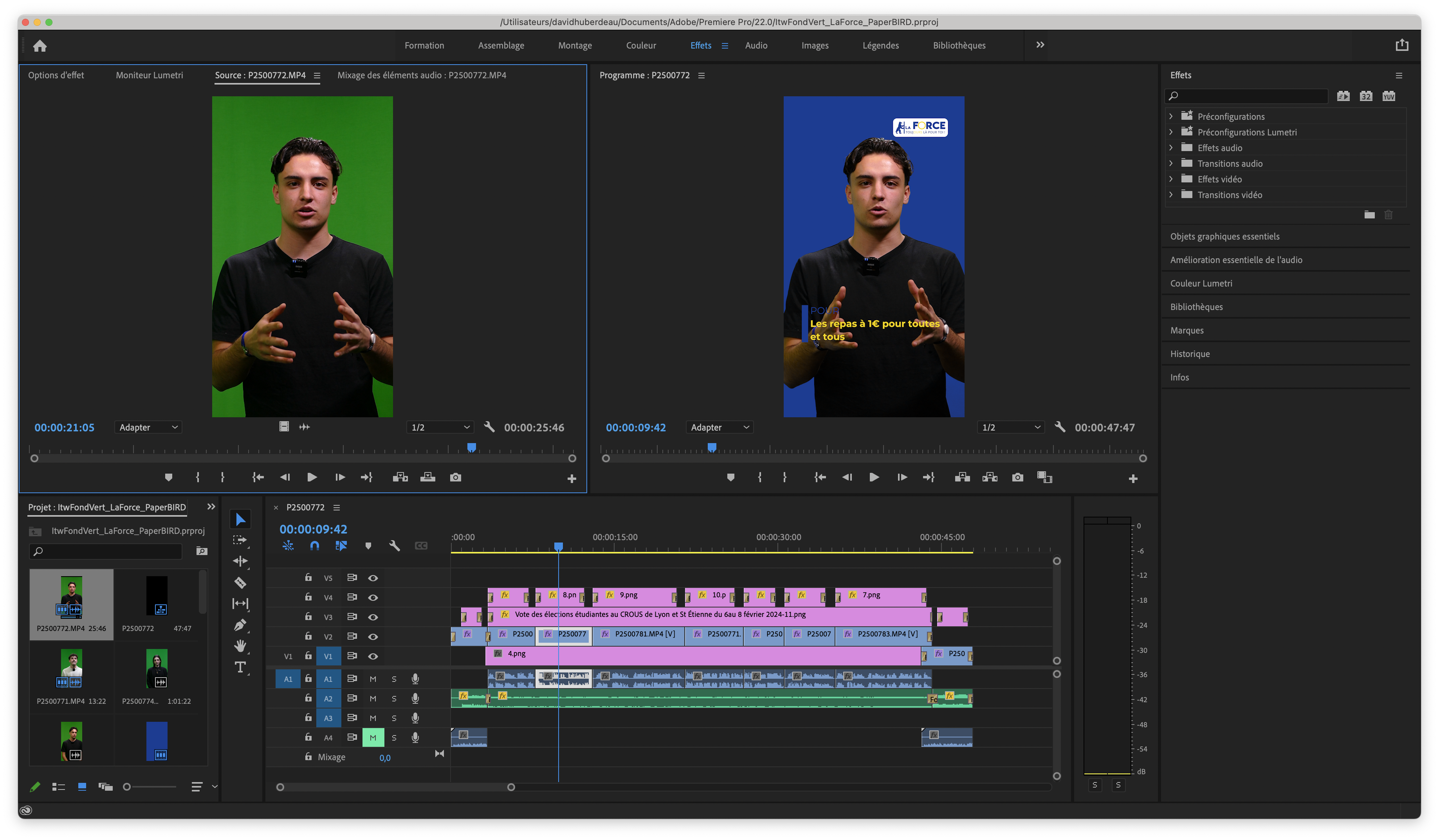 Montage d’un clip de campagne, avec effets vidéos, sur ADOBE Premiere Pro