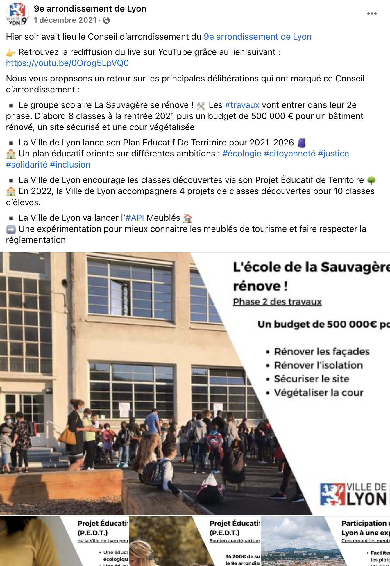 Projet : Stage d’immersion à la Mairie du 9e Arrondissement de Lyon, novembre 2021.