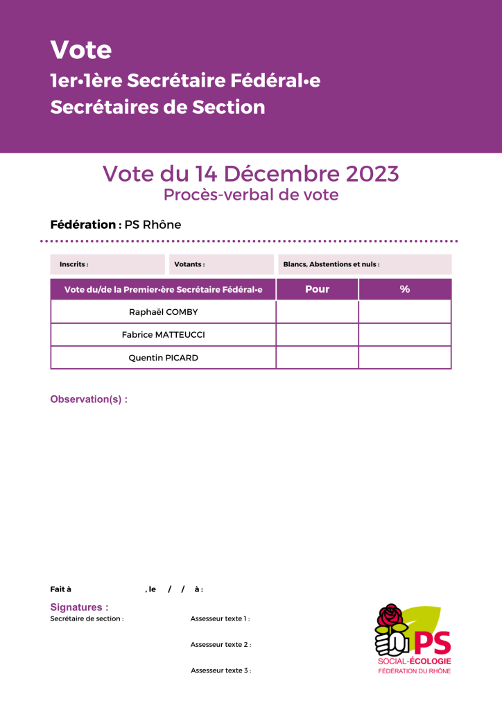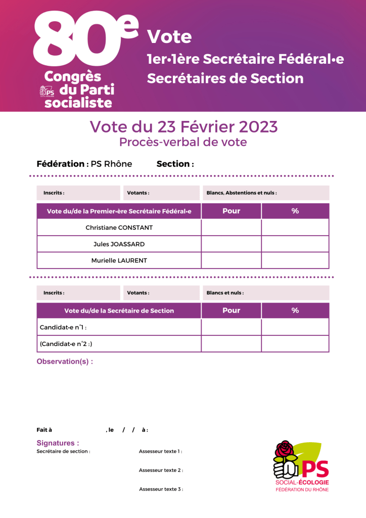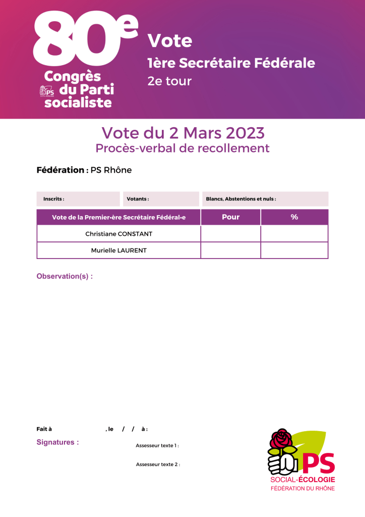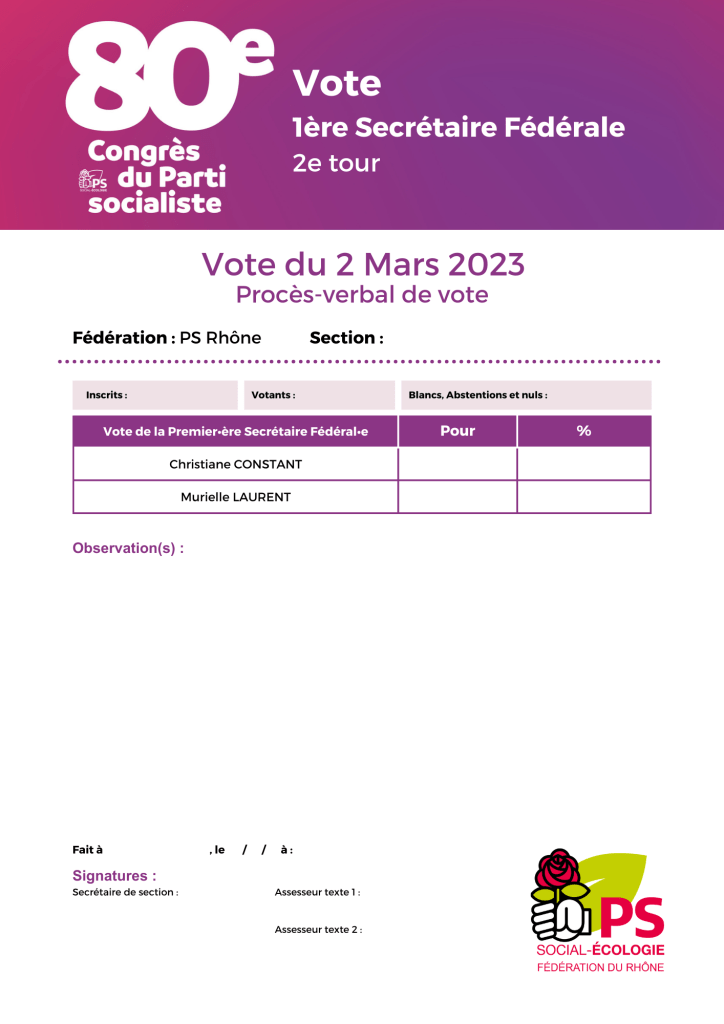Projet : 80e Congrès du Parti Socialiste, votes internes au sein de la Fédération du Rhône, en respect de la charte graphique nationale du Congrès