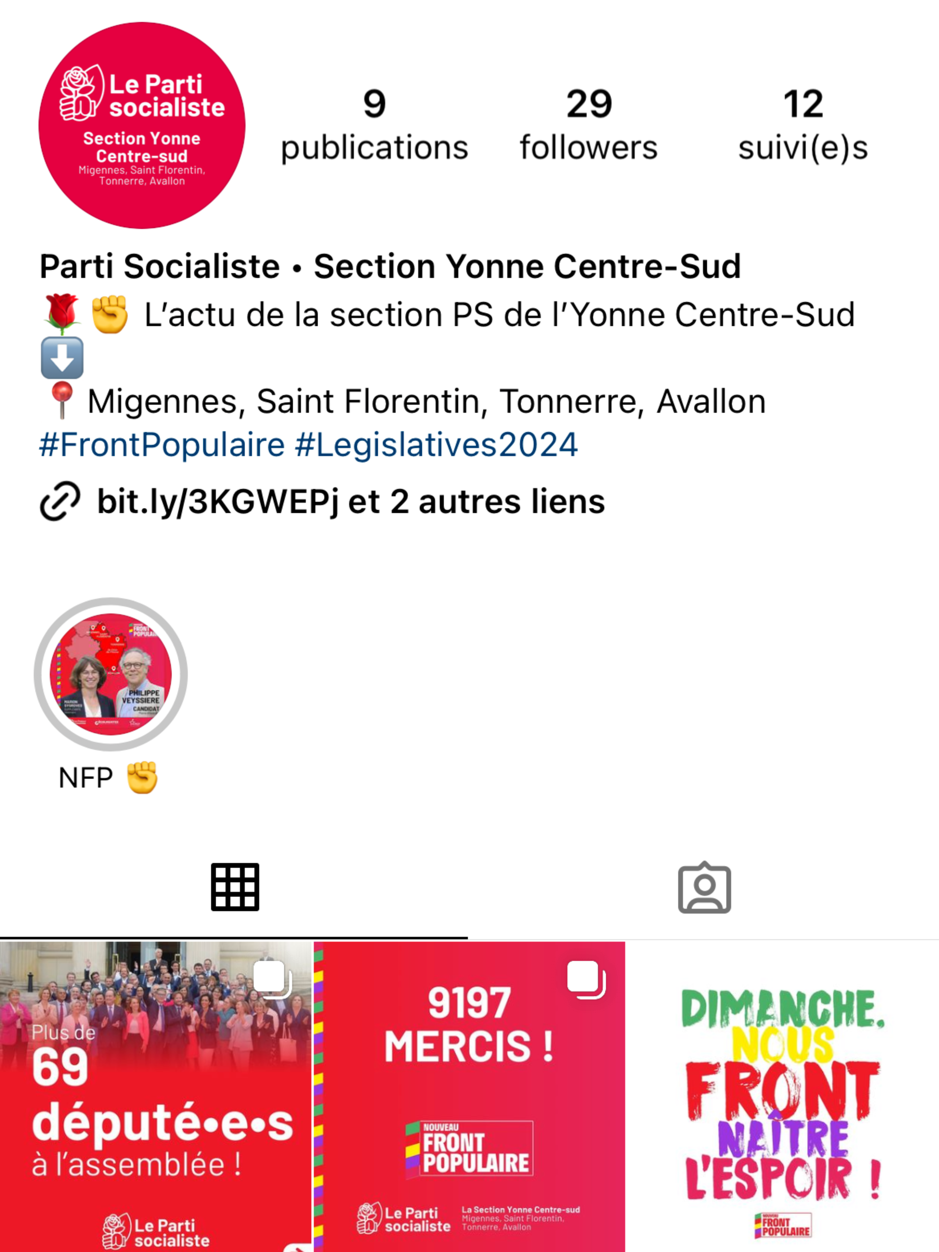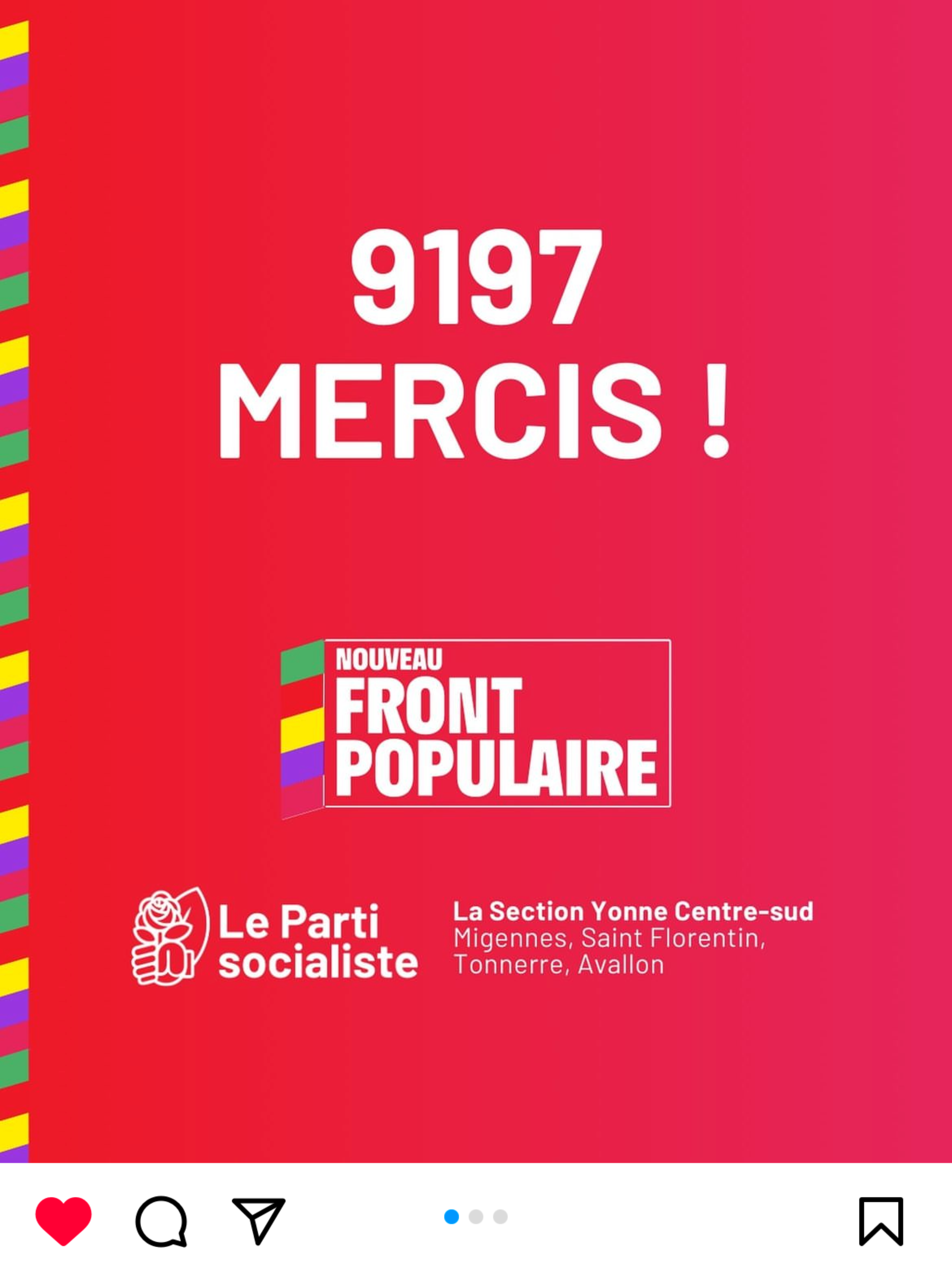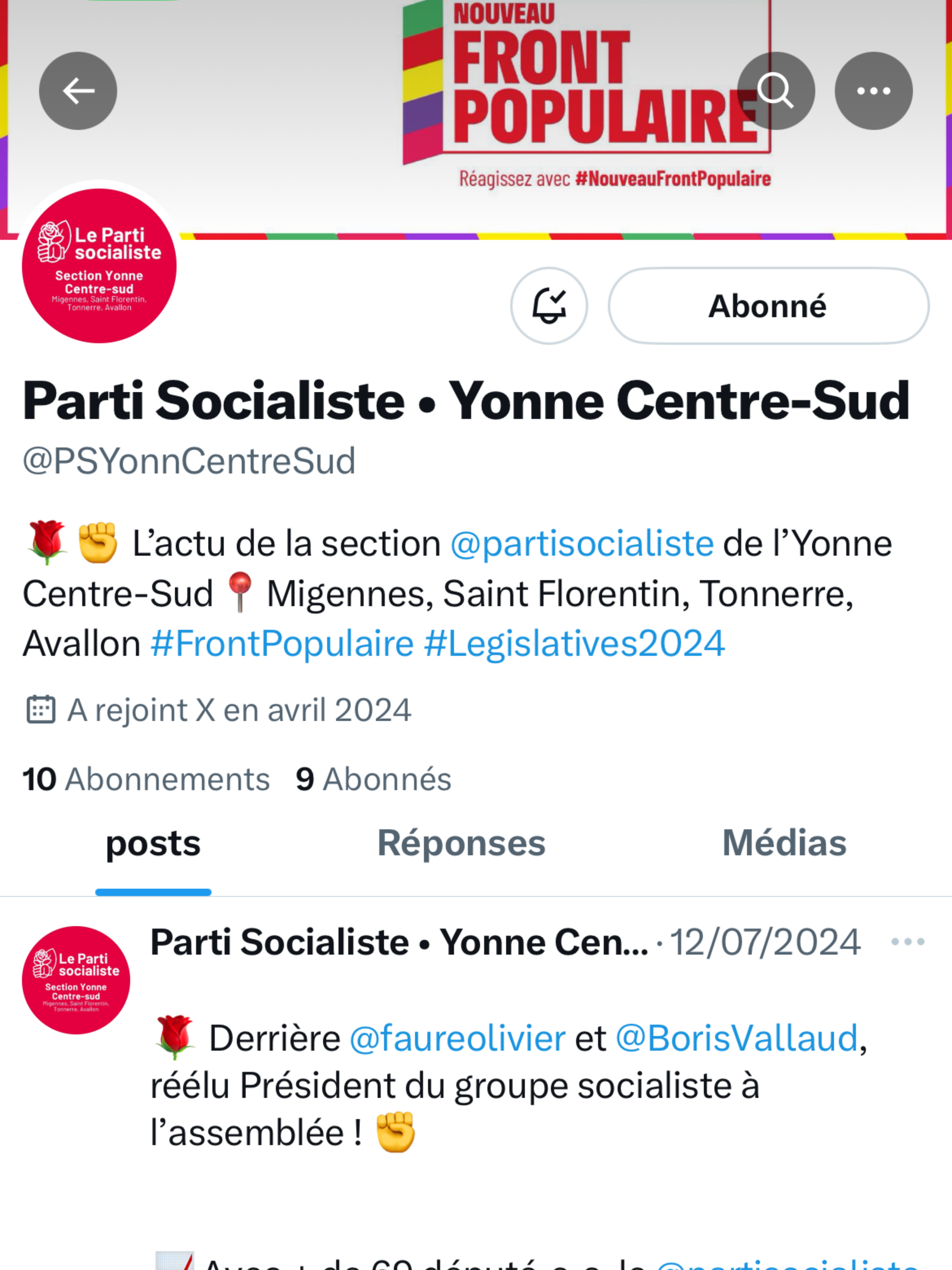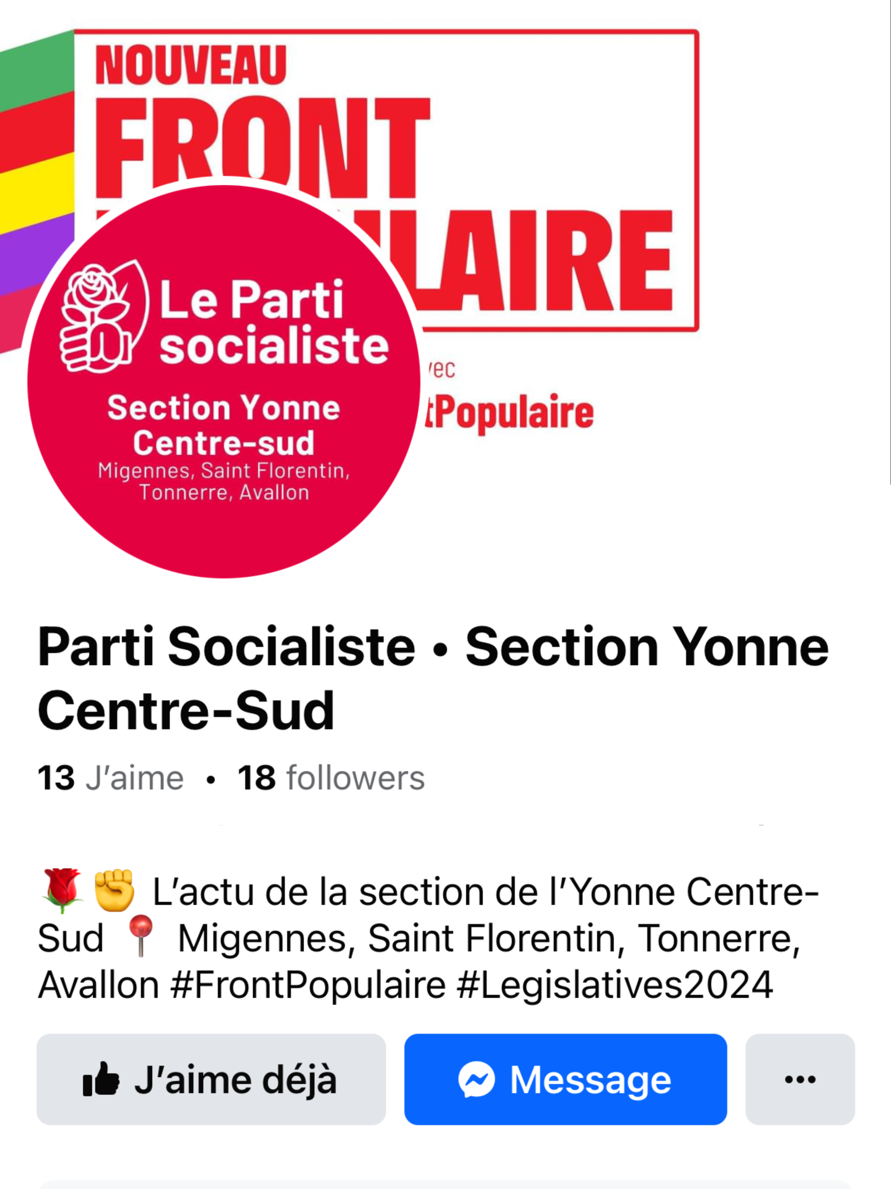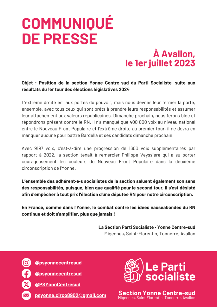 Projet : Réaction de la section Yonne Centre-Sud du Parti Socialiste suite au 1er tour des élections législatives 2024, juillet 2024.